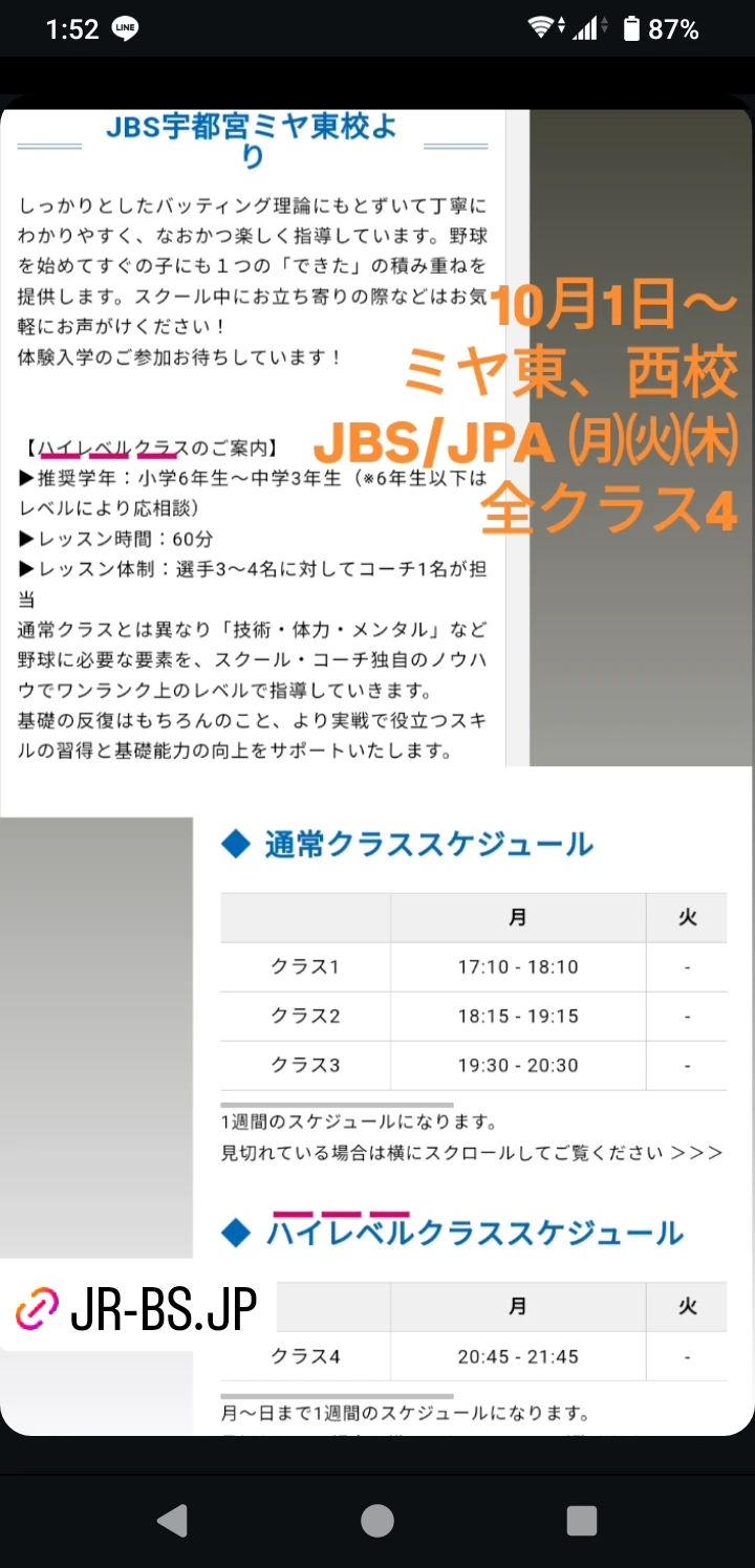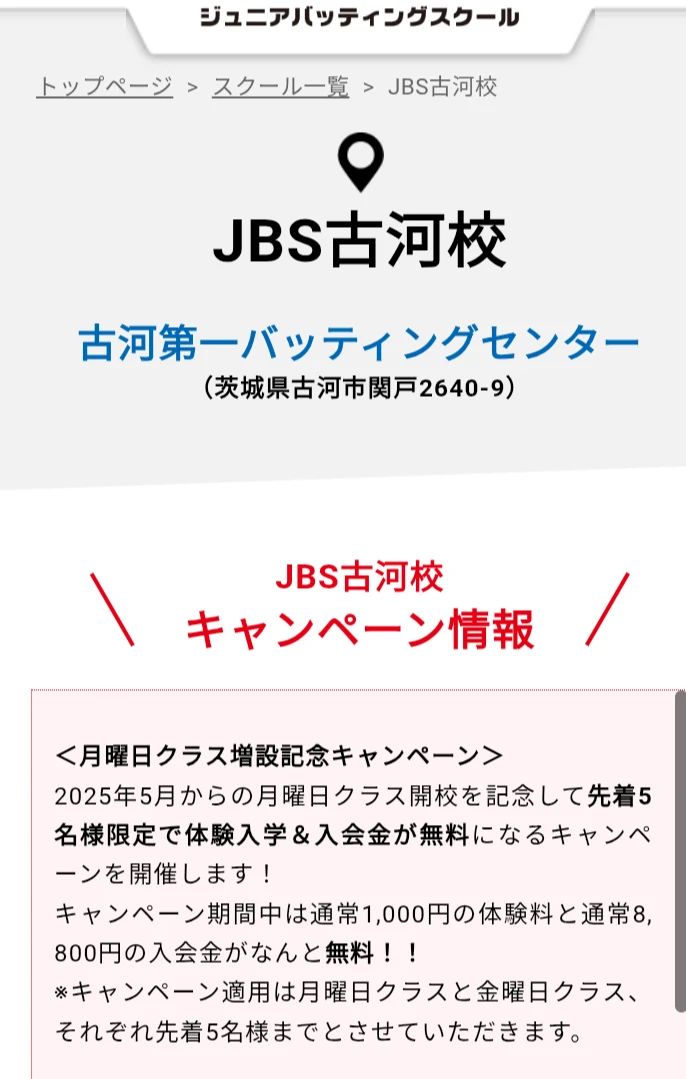 茨城県で平日に開講している野球教室は、JBS ひたちなか校、JBS 古河校、JBS 石岡スポーツランド校があります。