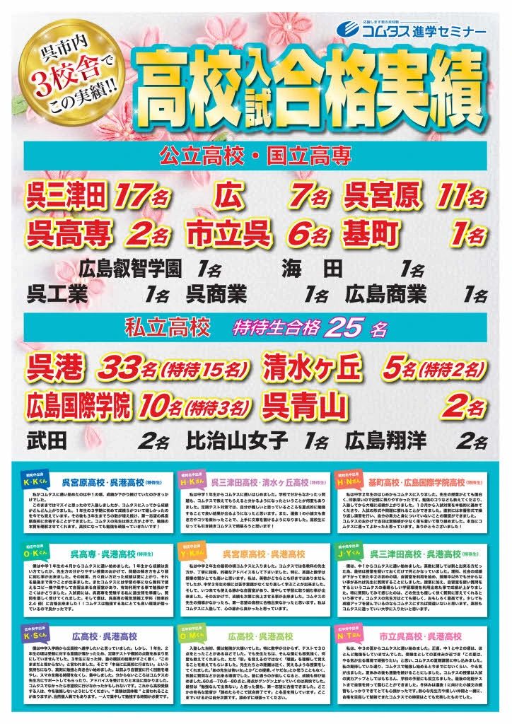呉市で土日に開講している学習塾教室は、鷗州合格必達個別ゼミ 呉校、個別指導塾スタンダード 呉教室があります。